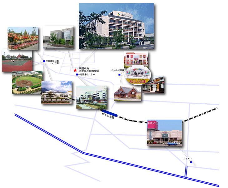 伊予三島駅からは、本学院との間を無料の送迎バスが運行しております。